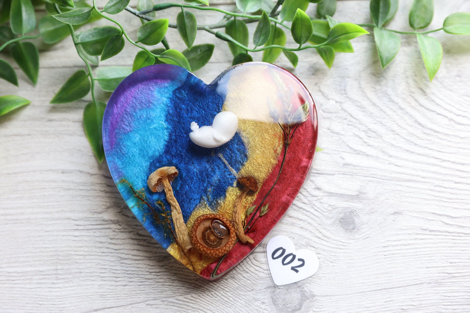 This beautiful piece has a 9 week baby inside a 4 inch heart .