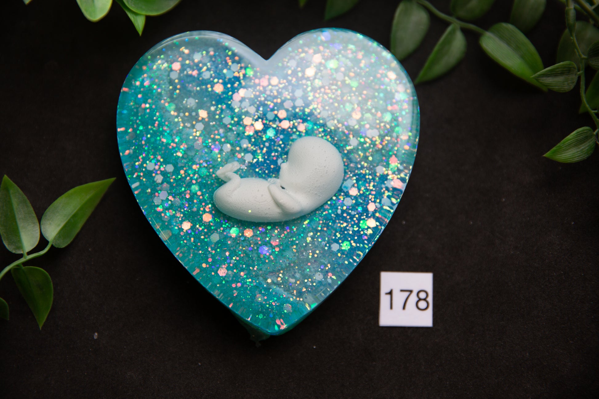 This beautiful piece has a 11 week baby inside a 4 inch heart .