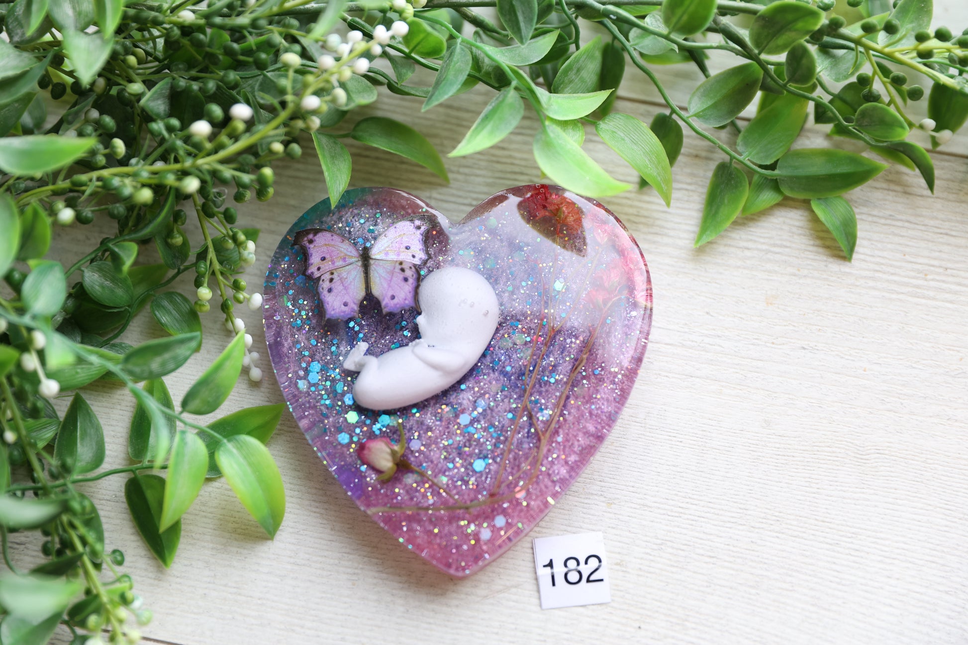 This beautiful piece has a 11 week baby inside a 4 inch heart .