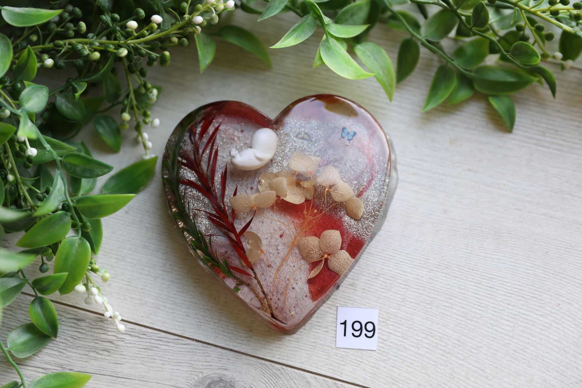 This beautiful piece has a 9 week baby inside a 4 inch heart .