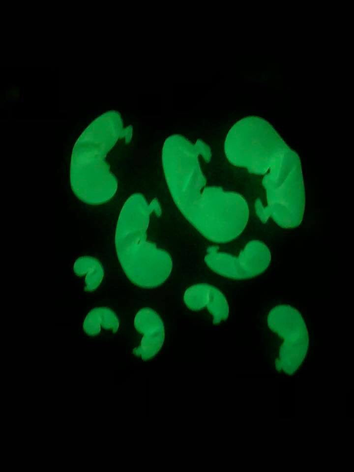 If you want to add something a little bit extra to your heart why not look at our coloured baby's or our glow baby's. These sweet little baby's are a great addition to personalise your keepsake. We have baby's from 6 weeks to 10 weeks available in pink or blue and we have baby's 6 weeks to 10 weeks available in glow in the dark.